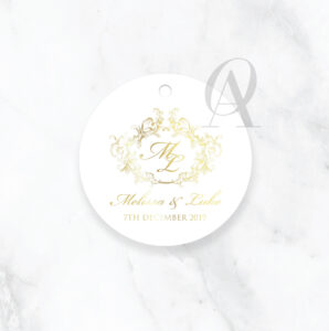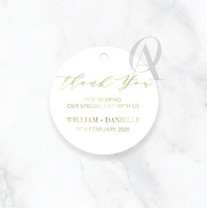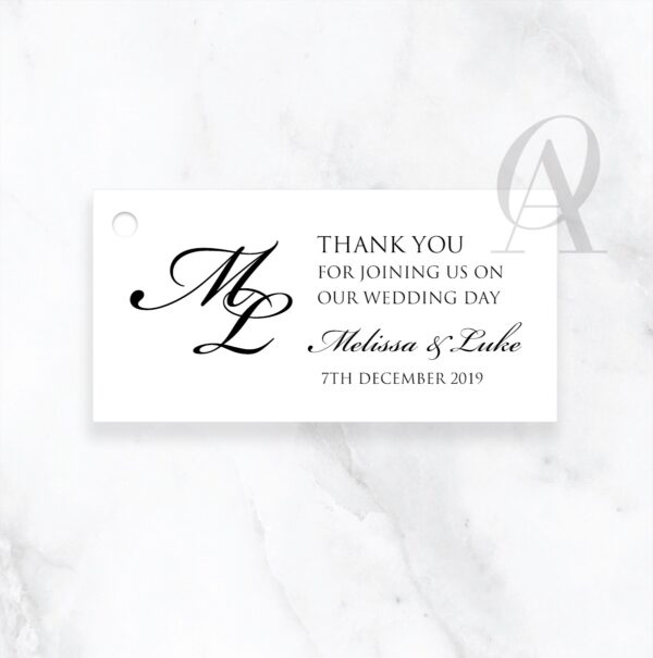 Express your gratitude with elegant wedding thank you tags designed with your initials. The thank you tags are pre-punched and ready to use on your wedding favours and bombonieres.