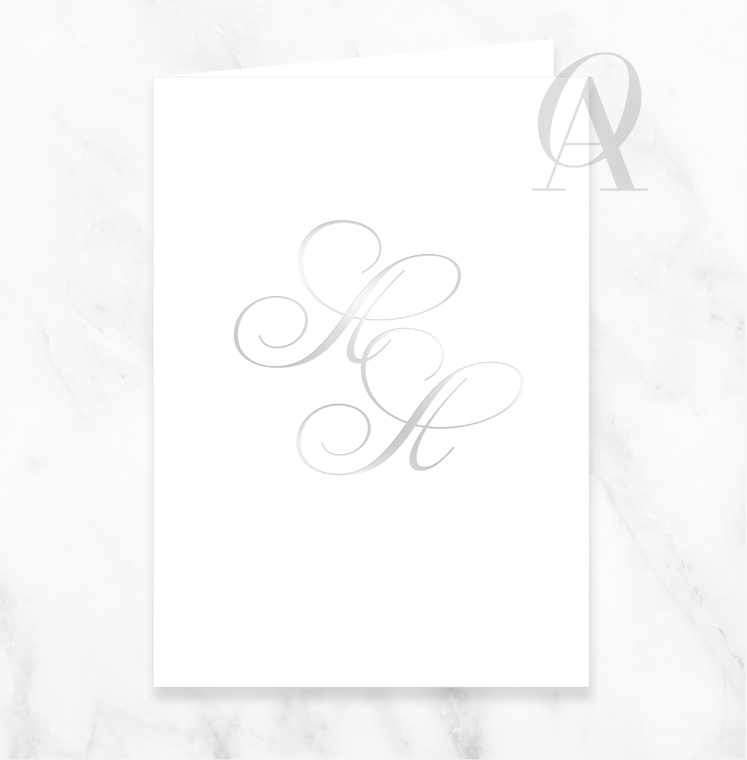 Personalise your church booklets / order of service booklets / wedding programs with your initials in silver foil for a luxurious and elegant design. The design in foil is produced with the same foil stamp for a consistent look and to create an impressive way to share the sequence of events and wedding ceremony traditions with your guests.