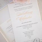 – Die cut pocket located under the main invitation store insert cards neatly (RSVP, Information or Wishing Well).