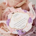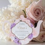 Excite your girlfriends with these gorgeous teapot bridal shower invitations. The cute and elegant design in purple and pink florals is perfect for your kitchen tea, or tea party themed bridal shower. Glam it up with silver or gold foil.