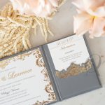Trifold Wedding Invitations Grey Suede Gold Foil Hardcover