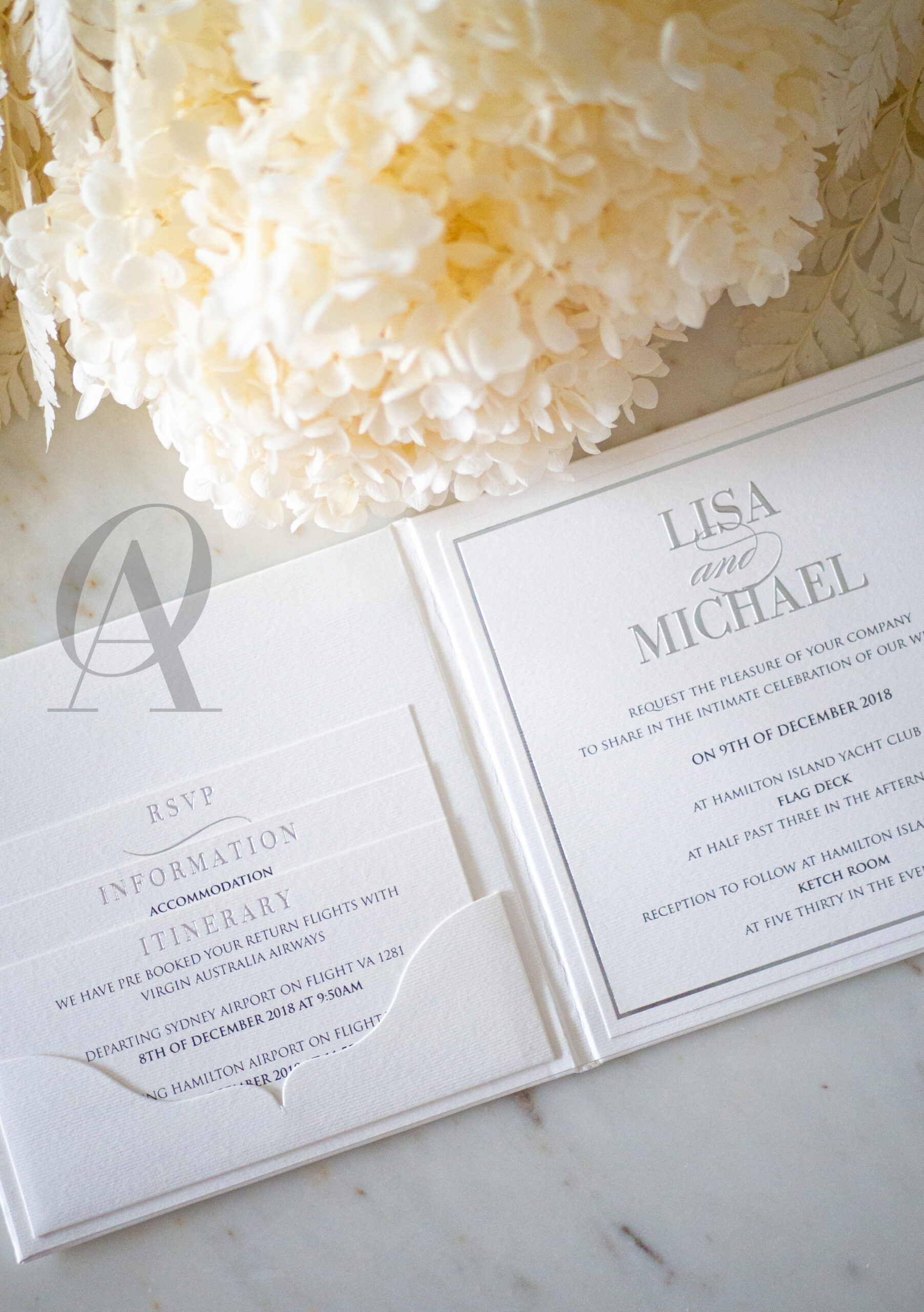 Modern Silver Embossed Wedding Invitations Hardcover Booklet