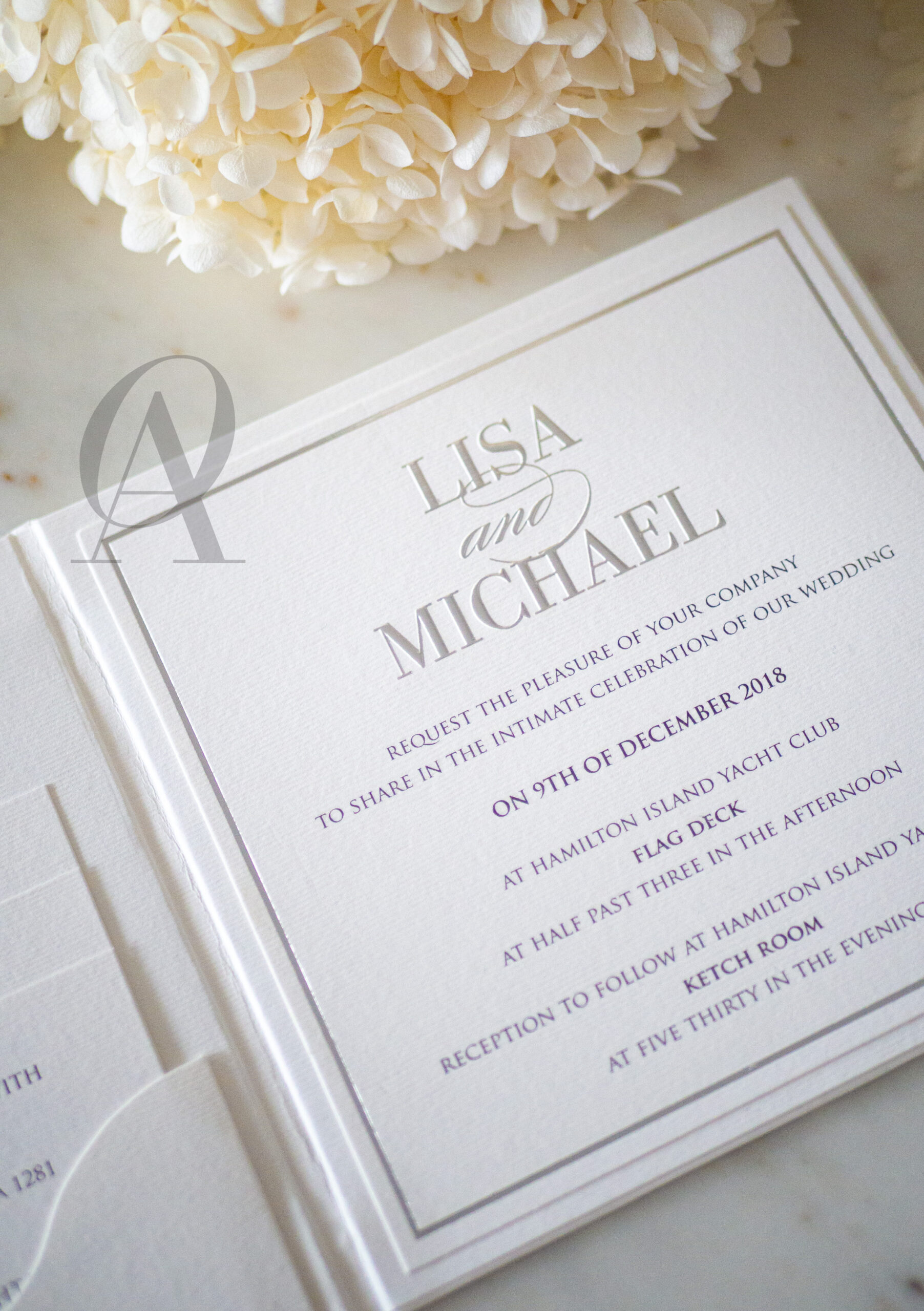 Silver wedding invitations are stunning. This simple and elegant design has everything the stylish and modern couple could want in their wedding invitations. Beautiful embossed silver foil adorns the sophisticated and clean layout with understated font styles. The beauty of minimalism and refined style will impress your guests and create a keepsake they will fondly remember.