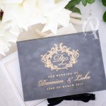 Indulge in supreme luxury right in the palm of your hands. This regal inspired boxed wedding invitation with the grandeur of suede reflects the opulent beauty and elegance you’ve been dreaming for your wedding. The timeless and trendy combination of grey and gold foil works magically on elaborate baroque designs and sets the tone for a bold and lavish celebration. Each one is handcrafted with the irresistible softness of European suede and a premium selection of paper materials to achieve a sensational touch, flawless print and a lasting keepsake cherished by you and your guests.