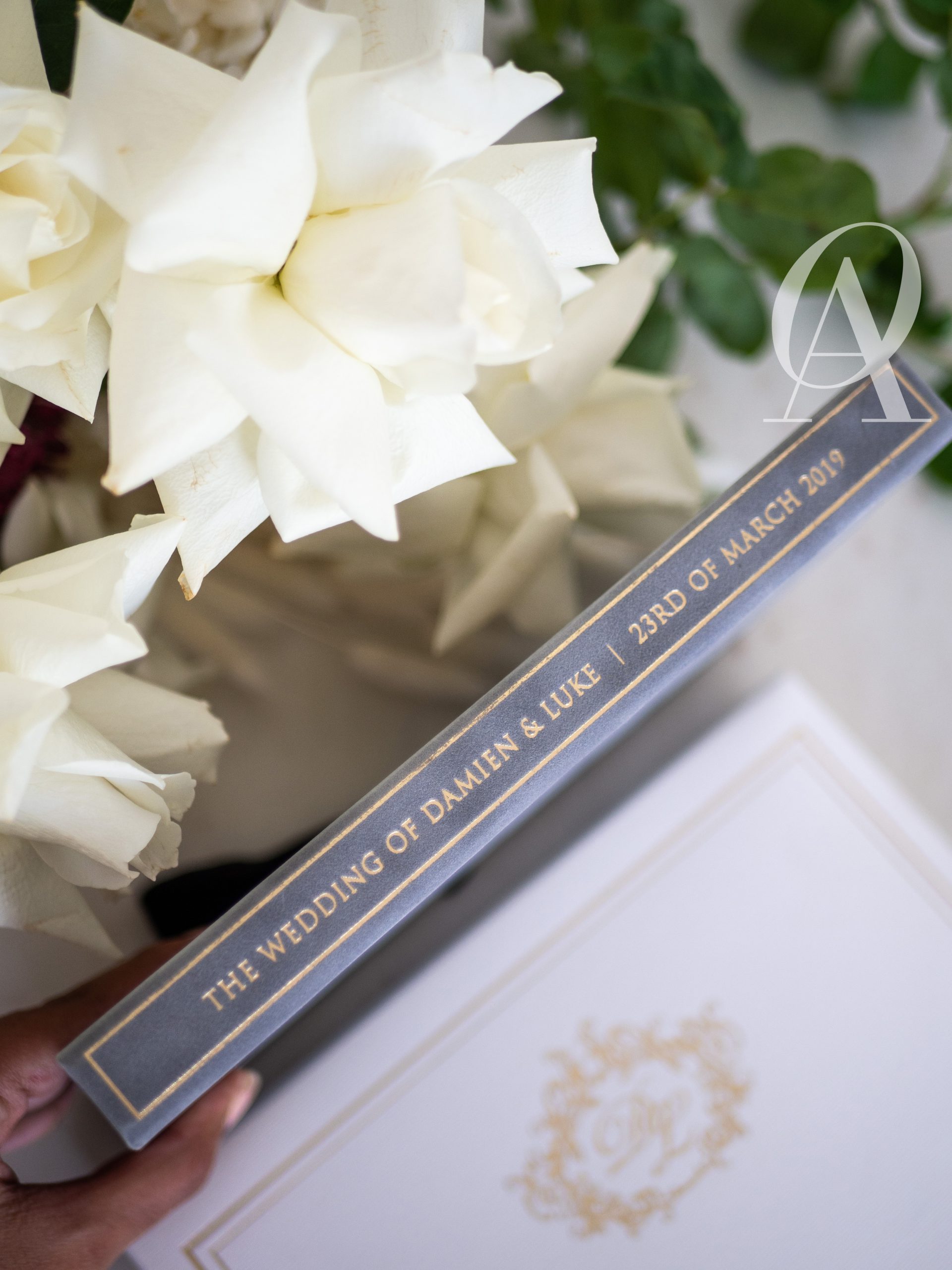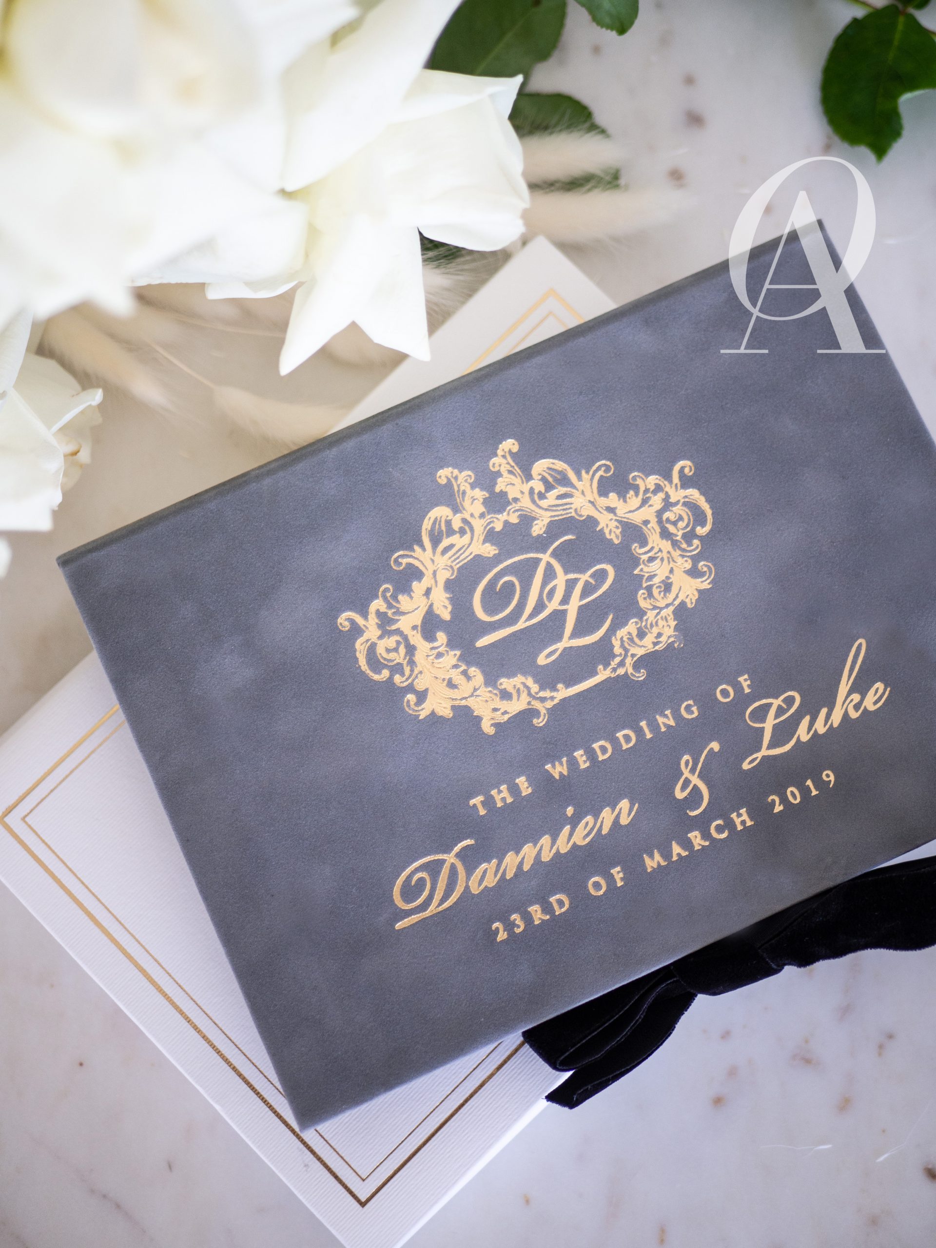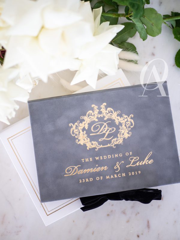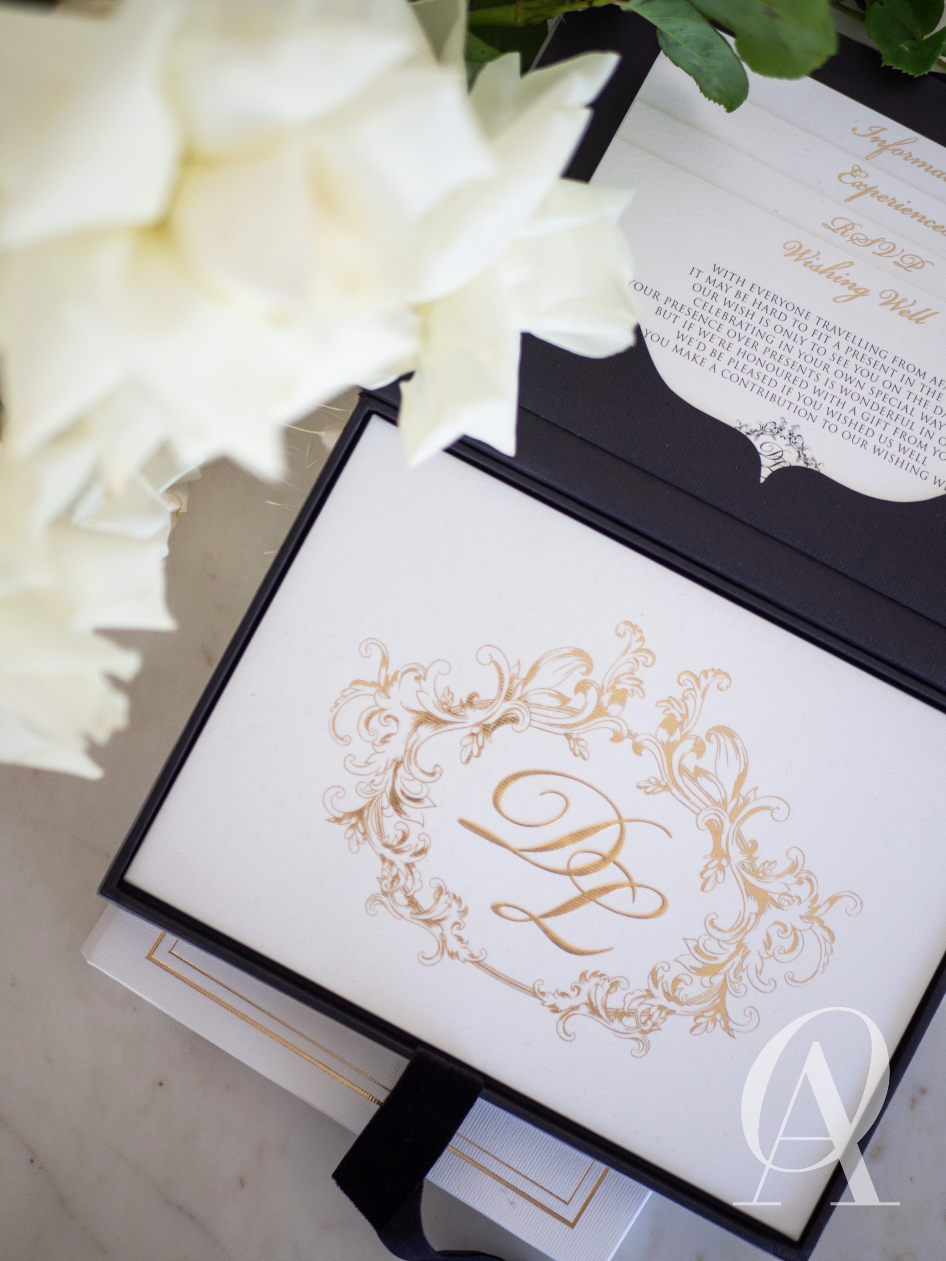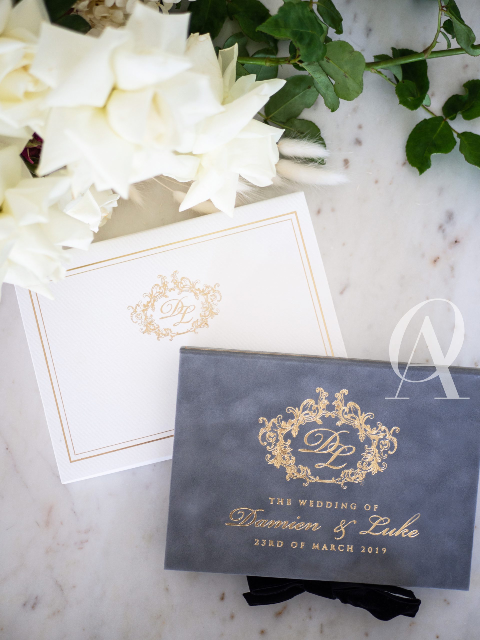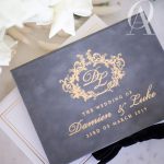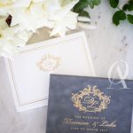 – Matching wedding monogram embossed in gold foil