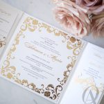 Embossed Gold Foil Tri-fold Wedding Invitations Square