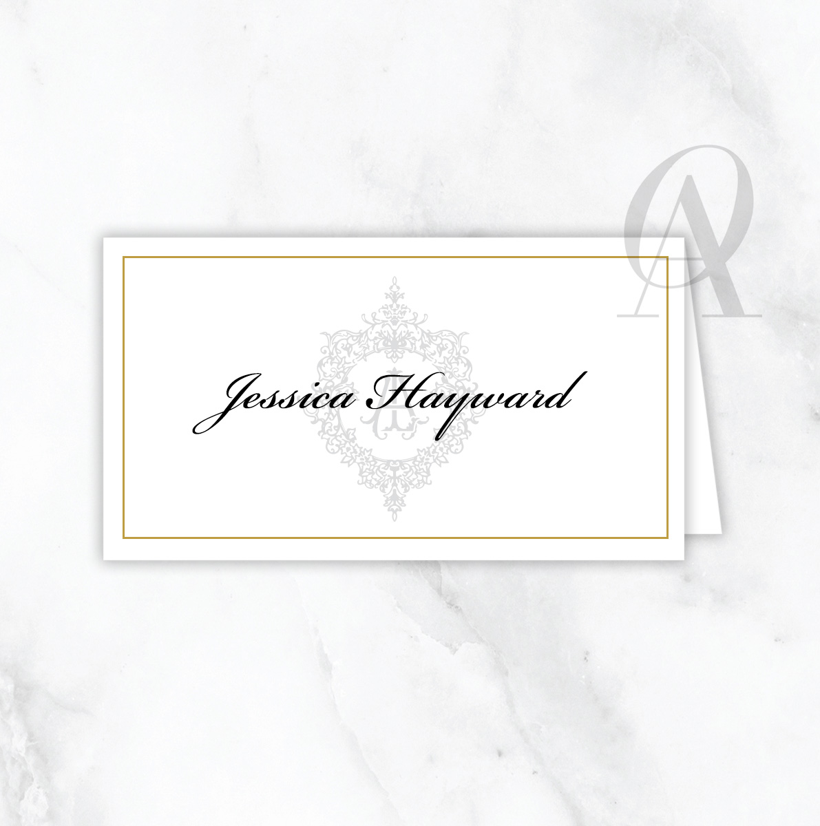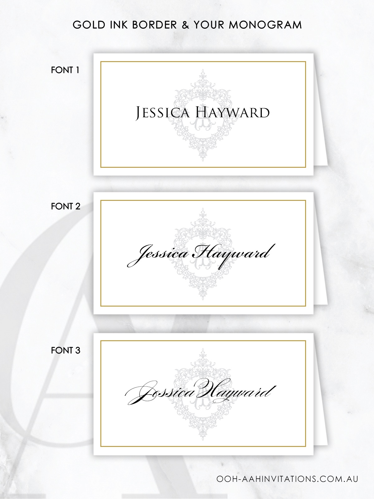 Your wedding monogram creates an elegant and personalised design for your table place cards. This design is a popular choice that ties with many of our wedding invitations. We can use matching fonts on the seating chart as well.