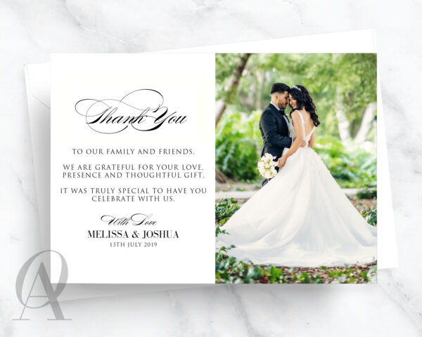 Classic Calligraphy Elegant Wedding Photo Thank You Cards
