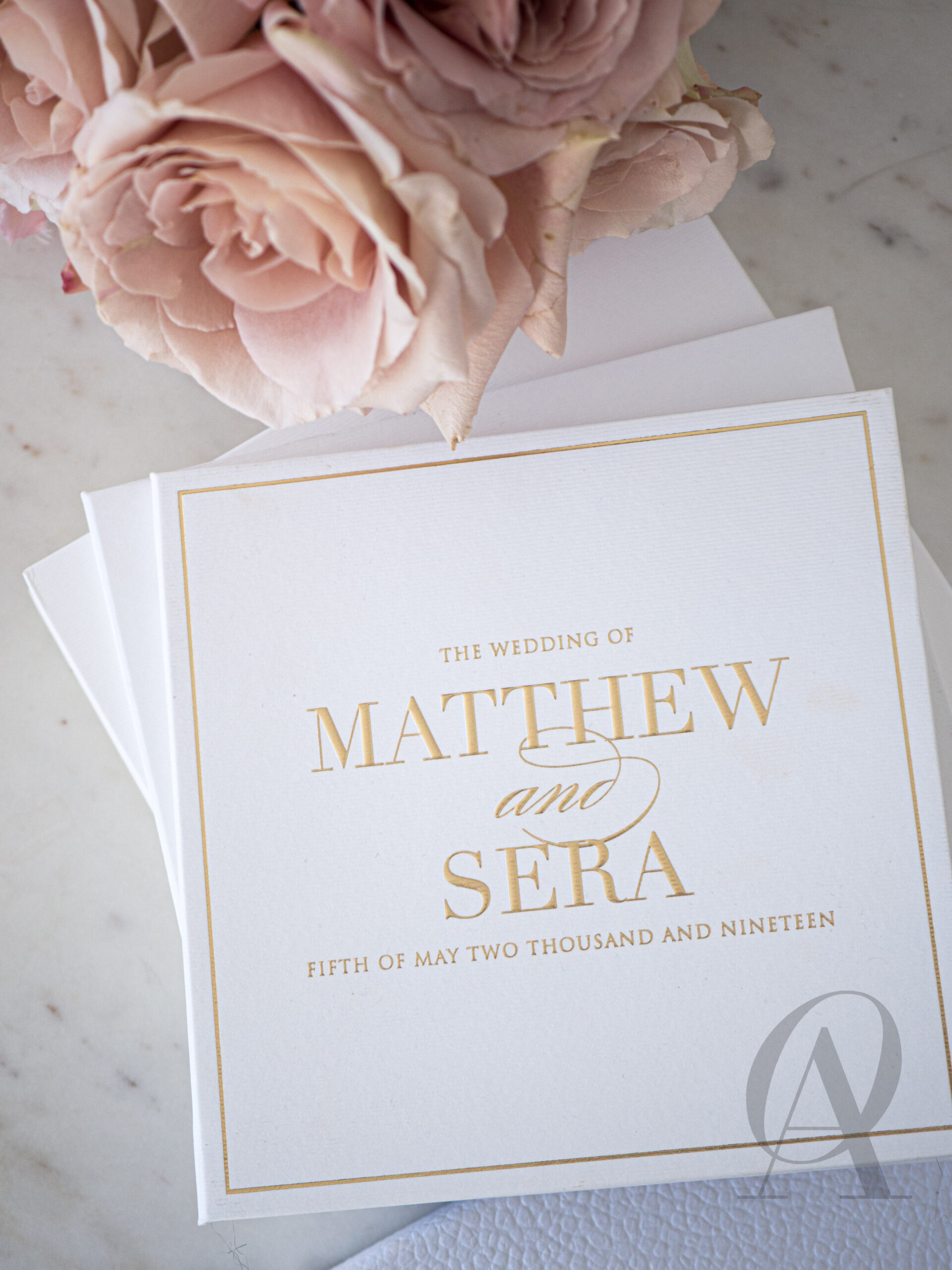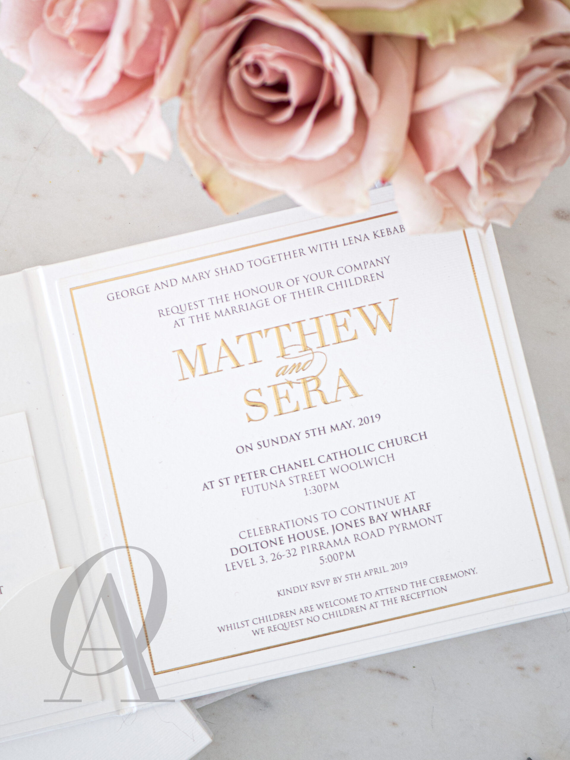 Modern White and Gold Embossed Wedding Invitations Hardcover Booklet