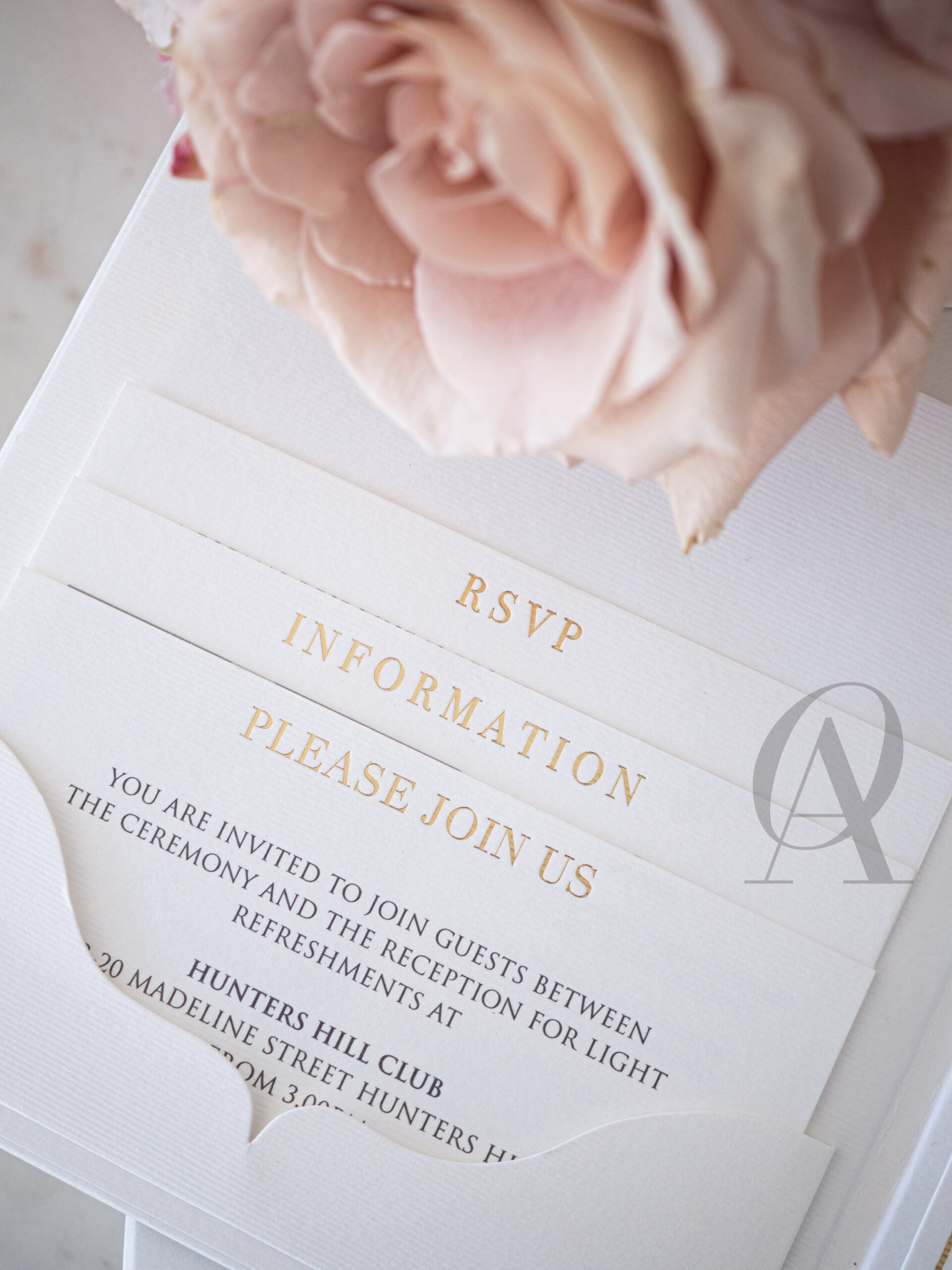 – Premium ivory Italian matte ribbed textured card stock adding a luxe feel and high quality print.